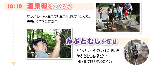 どのようなことをするのかというと、手作りパン作りから始まって温泉タマゴ作り、カブトムシ探しジャガイモ堀りまで普段は体験できないコトが盛りだくさんのプランです♪